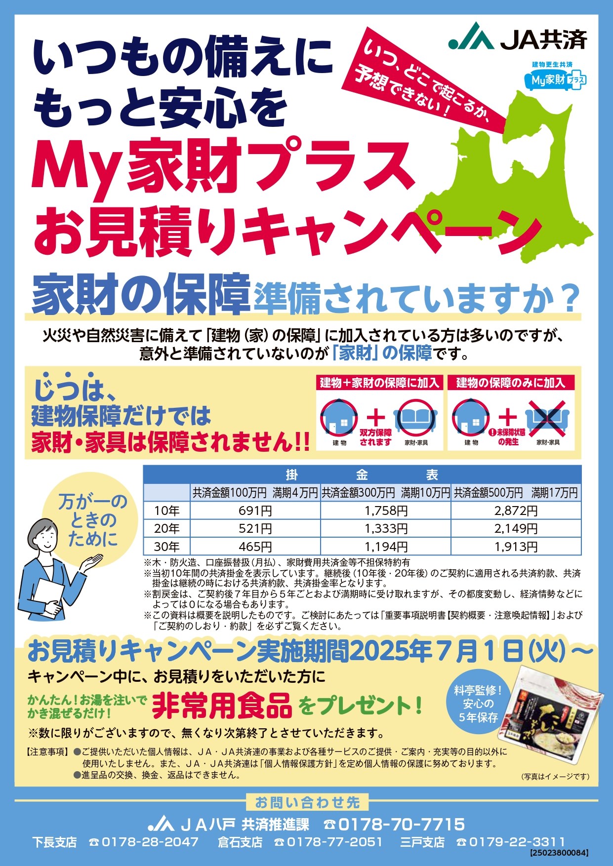 いつもの備えにもっと安心をⅯy家財プラスお見積りキャンペーン実施中